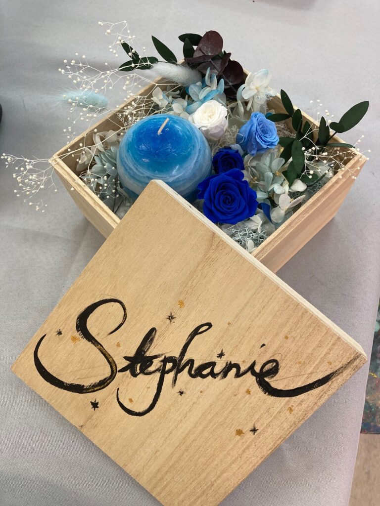 Design a beautiful gift box with handmade candle and decorate with preserved flowers. Optional to add final touches on the box cover with acrylic paints!