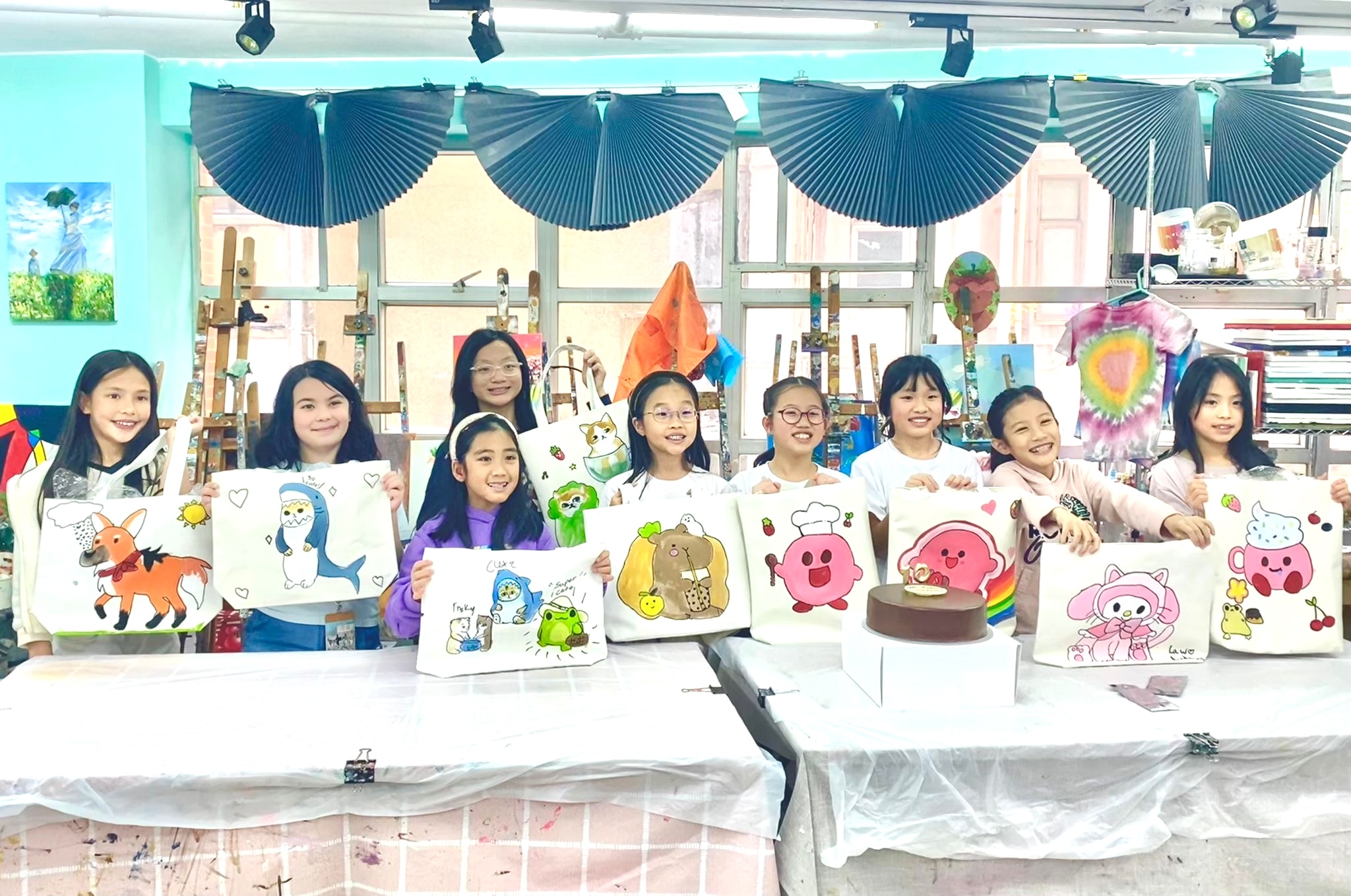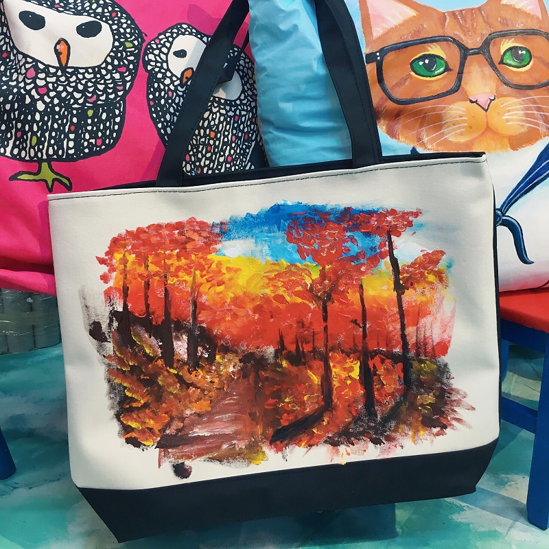 – All art materials included, i.e. a canvas tote bag with zipper (size: 42Wx34H cm, handle 22cm), a free flow of quality acrylic paints, brushes, palette, apron, idea books and a soft drink